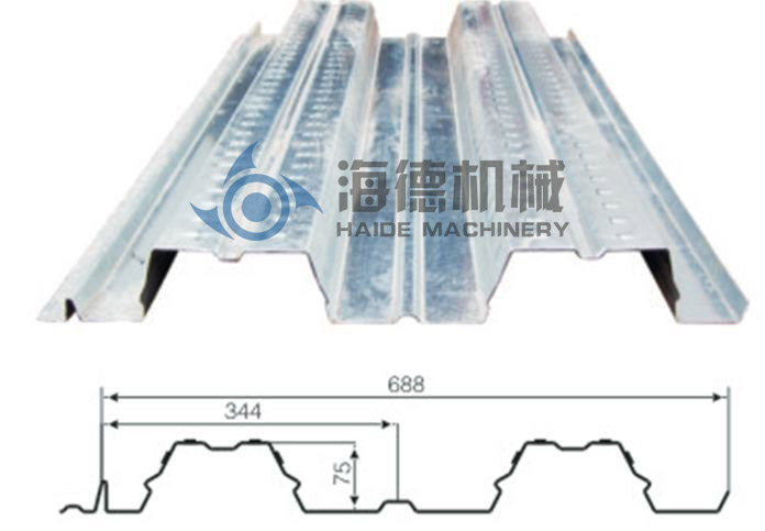该机生产的楼承钢板,用于楼层楼面板,具有波峰高、强度大等特点,而且生产自动化程度高,成本低廉。