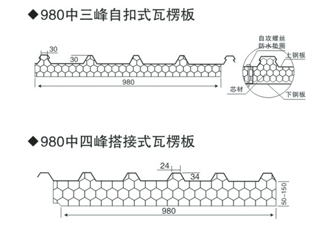 此设备生产的岩棉夹芯板由于使用了岩棉条90°反转和错位排列的生产工艺,生产出的夹芯板表面平整,板体有力,粘合力强。特有的板型设计,两侧不用封边钢带,全岩棉内置,接口处紧密,避免了搭接口的冷桥现象。提高了板材的保温效果。本公司产品是彩钢建材行业的理想选择。